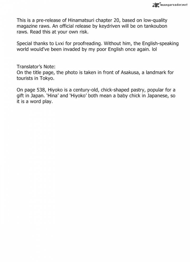 Download Hinamatsuri Chapter 20 to any of your device for offline reading available here at Mangareaders.