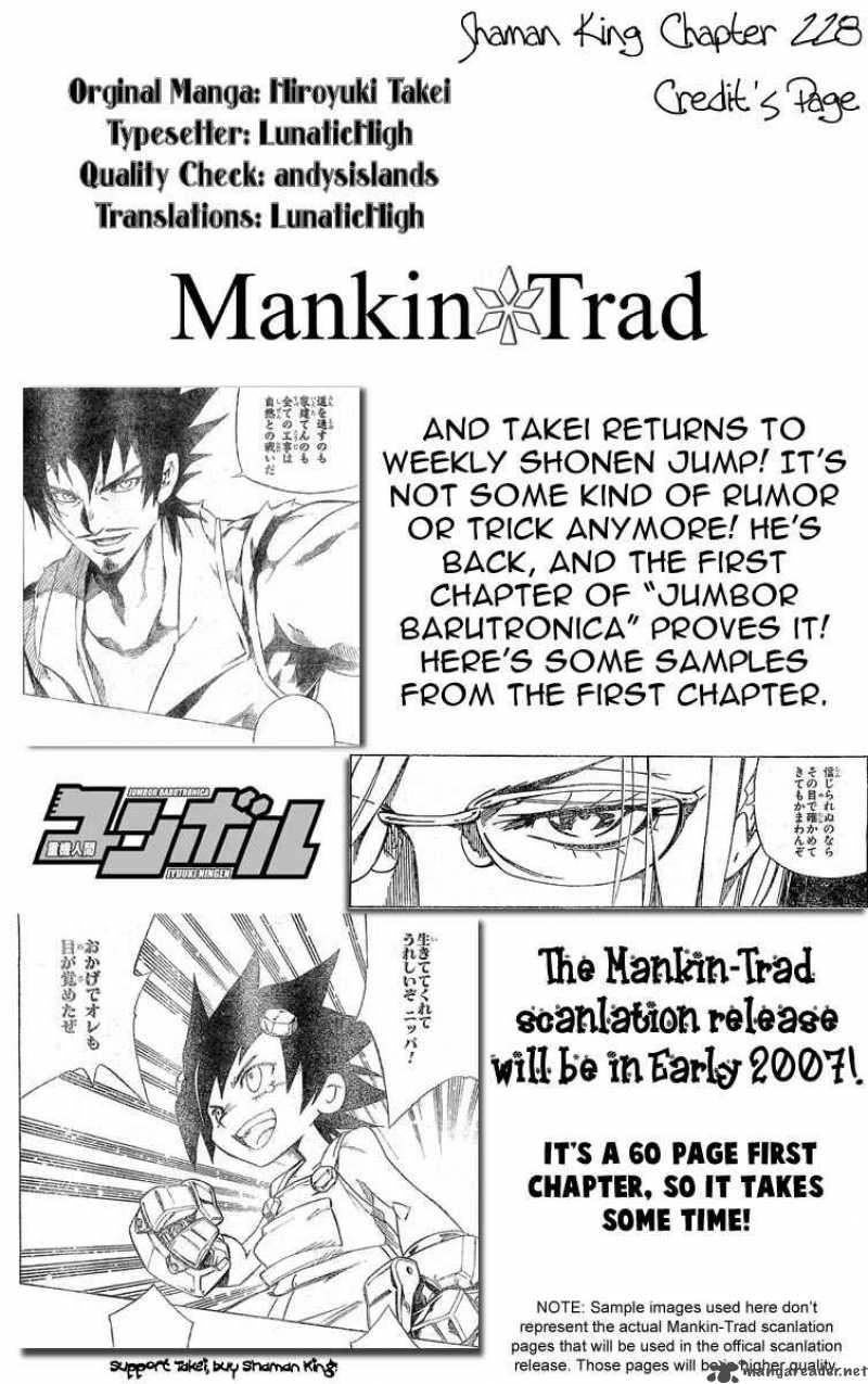 Download Shaman King Chapter 228 to any of your device for offline reading available here at Mangareaders.