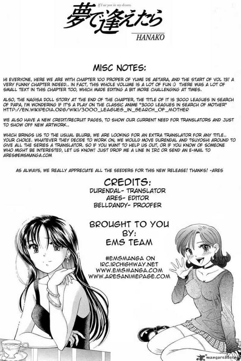 Download Yume De Aetara Chapter 100 to any of your device for offline reading available here at Mangareaders.